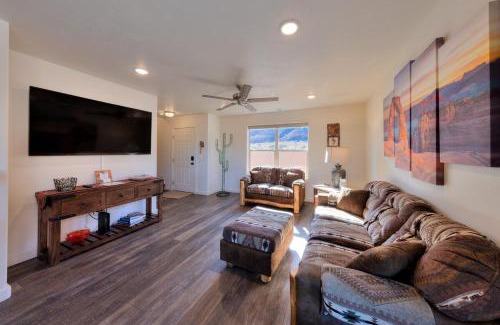 Offering a tennis court, Moab Views, Pool, Hot Tub, Natl Parks provides accommodations in Moab. This property offers a private pool, free Wifi, and free private parking. The vacation home has a children's playground and a hot tub. Providing a patio and mountain views, the spacious vacation home includes 2 bedrooms, a living room, satellite flat-screen TV, an equipped kitchen, and 3 bathrooms with a walk-in shower and a hot tub. Towels and bed linen are provided in the vacation home. The property has an outdoor dining area. If you'd like to discover the area, cycling and hiking are possible in the surrounding area, and the vacation home can arrange a bicycle rental service. Mesa Arch is 13 miles from Moab Views, Pool, Hot Tub, Natl Parks, while North Window is 17 miles away. Canyonlands Field Airport is 17 miles from the property.