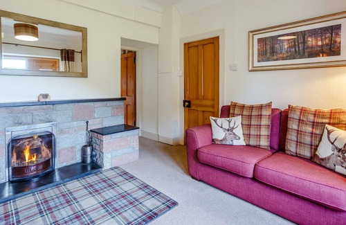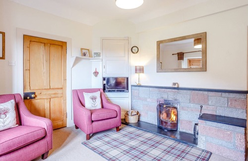 Amenities: Electric central heating with open fire. Electric oven, hob and grill, microwave, fridge/freezer, washing machine, iron, cafetiere, hair dryer. TV, DVD player, Radio/CD player, WiFi, selection of books, games and DVDs. Fuel, power starter pack for open fire inc. in rent. Bed linen and towels inc. in rent. Highchair, travel cot and stairgate available on request. Off-road parking for 2 cars. Enclosed garden with lawn, patio, furniture and barbecue. Two well-behaved pets welcome. £20 charge per pet. Sorry, no smoking. Shop 5.5 miles, pub 4.8 miles. Note: Accommodation is all on the ground floor although there is a single step to the entrance, bedrooms and bathroom