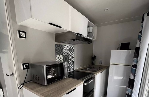 Details: Disabled access : yes Wi-Fi access : Supplement Playground for children : Free Family animations : From 06/07/2024 to 01/09/2024 Sports animations : From 06/07/2024 to 01/09/2024 Pets allowed : Authorized dog (excluding 1st and 2nd cat.) - Additional Barbecue : gas - authorized Kids club : 4 - 12 years (Languages spoken : French) Deposit of bread : All season Grocery store : All season Baby Kit : Free Laundromat : Supplement Bedding : Supplement Towels : Supplement Number of stars : 3 Water park : Open from 24/04/2025 to 15/09/2025 between 10am and 8pm bowling : Free Ping Pong : Free Swimming pool : 2 Near airport : Bordeaux-Mérignac Airport #BOD (190.0 km) Restaurant : All season Snack bar : All season Tourist tax (surcharge) : On-site tariff and regulation Multisports ground Green key kettle Coffee maker : Electrical (flret) Cooked Microwave oven Number of bedrooms : 3 Number of double bed : 1 Number of single beds : 2 Number of pieces : 4 Number of bathroom : 1 Cooking plate : 4 gas lamps Fridge : with freezer Garden Lounge : 1 Surface (m²) : 31 Television : 1 Terrace : Partially covered