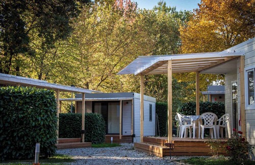 The mobilehome is furnished in a modern and functional style. The property is located in a holiday resort. Available for use: parasol, sun lounger, children's playground, barbecue facilities and terrace. gardenHoliday resortreception, 1 restaurant, bar, internet (WLAN) and laundry. LocationAlba. The mobilehome is located in a holiday complex, on a garden plot with meadow. The privacy of the room or apartment combined with the possibility of relaxing in the green, between the garden and the wooded area that creates tranquility is guaranteed.