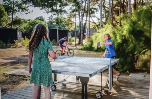 With direct access to the slopes, Mobilhome Ile de Ré, elegant wood 32 m2. Direct beach access. Pets allowed makes guests feel at home with conveniences like laundry facilities and barbecue grills.
