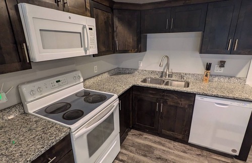 Private side entrance makes coming and going easy. Whether you’re in town for business or just looking to enjoy the area, this apartment offers the perfect balance of convenience, comfort, and style. Please keep in mind this is a basement apartment and though we did implement soundproofing during construction, it is not completely sound proof. It is better than most basement apartments, but not perfect.
