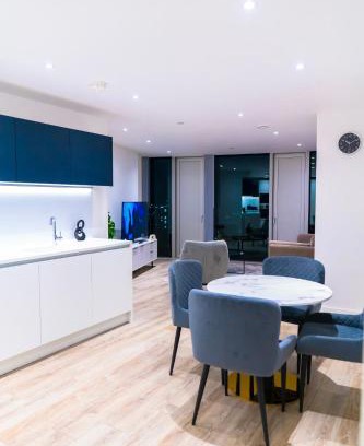 Modern 2 Bed Penthouse with Stunning views in Manchester City Center offers accommodations in Manchester, a 12-minute walk from Opera House Manchester and 0.9 miles from Manchester Art Gallery. This apartment provides an elevator and free Wifi. The property is a 5-minute walk from Manchester Central and within 0.8 miles of the city center. The air-conditioned apartment is composed of 2 separate bedrooms, a living room, a fully equipped kitchen with a dishwasher and microwave, and 2 bathrooms. Towels and bed linen are provided in the apartment. The accommodation is non-smoking. Popular points of interest near the apartment include Bridgewater Hall, The Palace Theatre, and Manchester Central Library. Manchester Airport is 8.1 miles away.