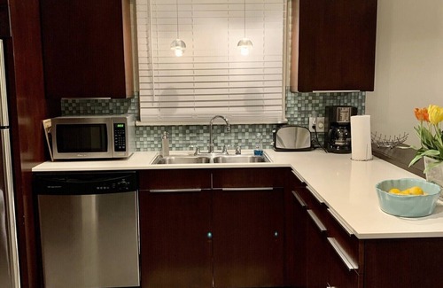Cozy 2 bedroom duplex in Hollywood, with easy access to all the entertainment that Hollywood has to offer, Hollywood Bowl, Walk of Fame, Madame Tusades, Universal Studios, Ground level, plenty of parking. Short walk or 5 min drive to Hollywood Blvd and Sunset. Walking distance to many of the top restaurants in LA; bars, clubs, and shops on Melrose. This unit has been completely renovated in 2014, All new Appliances, New modern Custom Kitchen, New Bathroom and designer details throughout.
