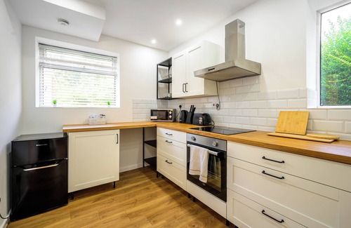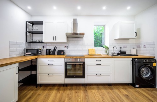 • Appliances Included: Oven, stove, microwave, kettle, fridge/freezer, toaster, and full cooking utensils