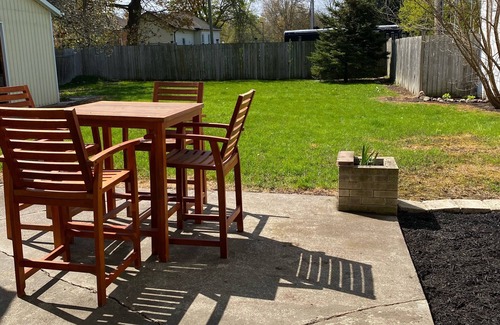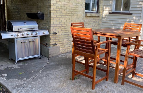 You'll enter off a large front porch into a completely updated & modern space. There are three large bedrooms with luxury sheets, space to hang and store your belongings and trendy decor. There is a full kitchen - fridge, microwave, stove, oven and dishwasher - completely stocked with all you will need during your stay. A revived yellow exposed brick wall frames your warm & inviting dining space. The common space includes a beautiful couch with a TV equipped with Chromecast. A washer and dryer is available on the main floor. There is a sunroom to the rear of the house which leads to the large backyard. We have just purchased a brand new BBQ for the backyard space for guests to enjoy!