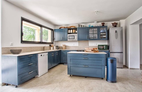 Step inside and you'll find a large open-plan living area where everyone can gather. The cozy lounge features plush sofas, armchairs, a connected flat-screen TV, and a fireplace for cooler evenings. The fully equipped kitchen opens onto a large wooden dining table that seats 12 – ideal for long meals, shared stories, and good wine.
