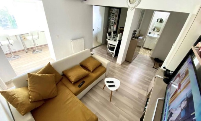 Large apartment with street view, beautiful, ideal for 2 persons, completely renovated, all the furniture is new, new kitchen with all utilities, gas cooker, fridge, microwave, kettle, free Wi-Fi, bathroom with shower, washing machine, smart TV, Neetflix , Just 2 minutes walk to Shops .