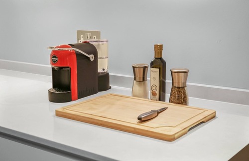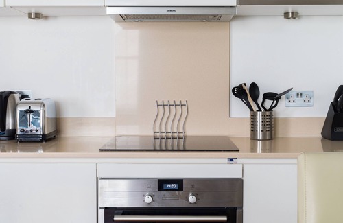 A fully equipped designer kitchen is provided, together with a large bathroom incorporating a bath and separate shower, and a utility room containing a washing machine and separate tumble dryer. The kitchen contains a dishwasher, fridge freezer, conventional and microwave ovens, induction hob, waste disposal unit and coffee machine. A high speed internet connection is provided free of charge.