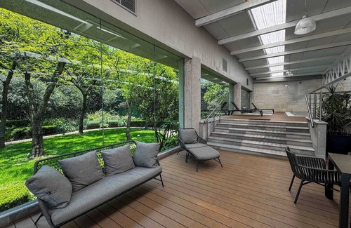 Discover a peaceful, light-filled escape in one of Mexico City’s most modern and dynamic neighborhoods. Perfectly situated next to the striking “La Lavadora” building and just steps from Garden Santa Fe, this stylish apartment blends comfort, design, and unbeatable location.