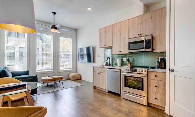 Explore Atlanta, GA, with ease when you stay at this stylish and contemporary vacation rental! The 2-bedroom, 2.5-bathroom townhome sits roughly 2 miles from downtown and is walking distance from trendy eateries and Center Parc Credit Union Stadium. Find ingredients for your next meal at Green Market in Piedmont Park, or release your inner thrill-seeker at Six Flags Over Georgia. Later, return home and watch the sun dip below the city skyline from your vantage point on the rooftop balcony.