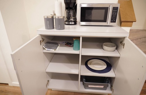- A mini-fridge, microwave, coffee maker, and all you need for light refreshments