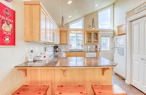 This cozy cabin sits just a block from Alsea Bay and is a short walk to a mile of sandy beach and you’ll also enjoy access to the seasonal pool at the Bayshore Beach Club, plus the neighborhood playground and tennis courts. This cabin will keep you cozy with its large couch and flat-screen TV and its beautiful bay view!
