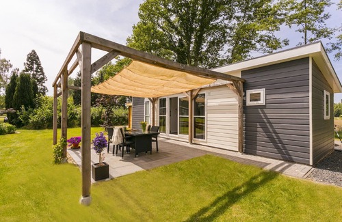 The detached accommodations in this small-scale holiday park are located directly by the water or near the water that runs along the entire park. The modern appearance of the chalets is the result of a sleek design and large windows. From the tastefully furnished living room, the sliding doors and a small step offer access to the terrace with garden furniture. A lovely place to spend the end of the day.