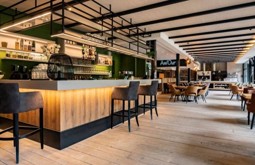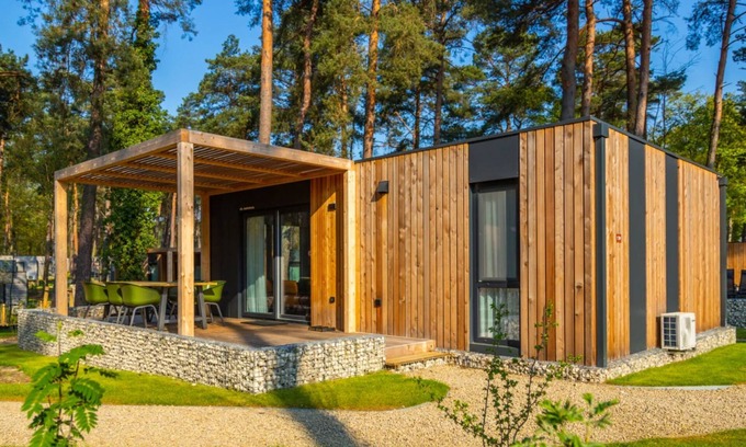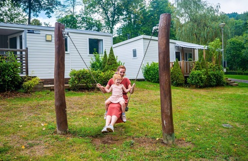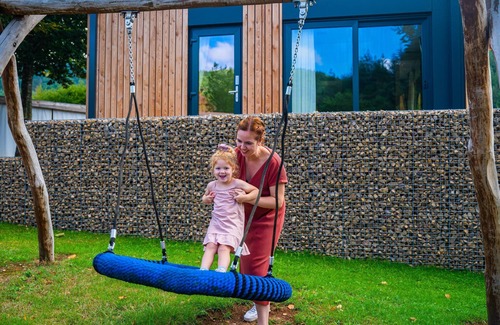 This detached, modern chalet is located in the beautifully situated Resort Kohnenhof holiday park on the Our river, a stone's throw from the German border. The holiday park is located in a natural environment at 7 km from the small-scale centre of Parc Hosingen and 62 km north of the capital Luxembourg. The single-storey chalet is finished with a lot of wood. It is comfortable, fully furnished, and wonderfully light because of the high windows. The living room has a TV, and the open kitchen is equipped with, among other things, a dishwasher and microwave. There are two bedrooms, one with a 2-pers. bed and one with two 1-pers. beds. The bathroom has a shower and a separate toilet. The chalet also has air conditioning for extra comfort. You can reach the chalet's entrance via a few steps. Outside you can enjoy the (covered) terrace with garden furniture. There is parking for one car at the chalet. At the holiday park, the Kohnenhof Resort, various chalets and mobile homes can be booked for two to six people.