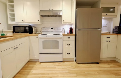 Experience the perfect blend of modern luxury and classic charm in our newly renovated 3 bedroom private (not a shared space) garden suite, located in the heart of Vancouver's delightful Cedar Cottage neighborhood. Nestled on a quiet, tree-lined street, our spacious suite offers a serene retreat from the bustling city, while still being conveniently located near transit and parks. Featuring real hardwood floors and a built-in fireplace, our 900 sq. ft. suite boasts 3 cozy bedrooms, 2 with a queen bed, and the third bedroom with a double bed, plenty of storage, and high-quality linens. The living space is equipped with a comfortable sectional sofa, which doubles as a pull-out bed for two, and a dining table that seats four. You'll also find a 55-inch flat screen TV, Apple TV, and high-speed WiFi to keep you entertained and connected during your stay. In the fully-equipped kitchen, you'll find everything you need to prepare a delicious meal, including a dishwasher and Nespresso machine for your convenience. We also provide kitchen staples, spices, and all the utensils you'll need. The full bathroom features a shower and is stocked with plenty of fluffy towels, shampoo, conditioner, body wash, and a hair dryer. Guests will have private access to the entire lower level of our character home. We pride ourselves on providing a comfortable and welcoming experience, so if there is anything you need that isn't listed here, just ask!