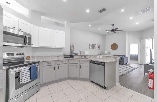 Our gorgeous modern coastal farm house is sitting in one of the most desirable communities for those wishing to vacation around the Disney and Kissimmee/Orlando areas. Drive time to Disney is 10 to 15 minutes and the community is also nearby Hwy 192 with a variety of shopping, dining, and entertainment.