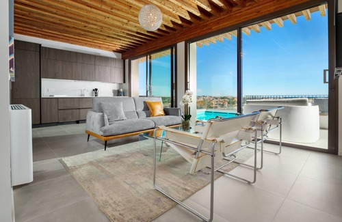 Modern Villa Mira is luxurious and offers American comfort with the elevator, heated swimming pool, sauna for colder days and relaxation, and concierge services.