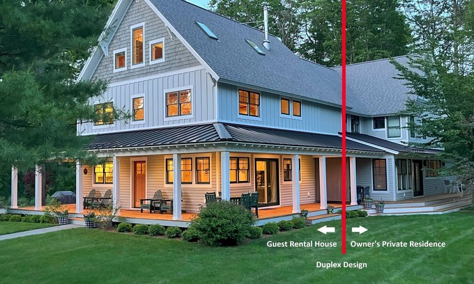 Since originally building our rental cottage, we have constructed a garage and owner living space behind the original cottage as a duplex. We live in the space behind the cottage and rent the original cottage space. The owner-living space is separated from the rental cottage by exterior doors on all three floors for complete privacy. Our guests have full access to the outdoor covered porch area of the original cottage. The owners have separate outside space in the back of the home. The owner's living space has a separate driveway and entryway.