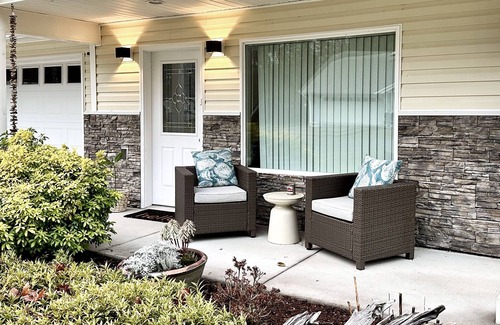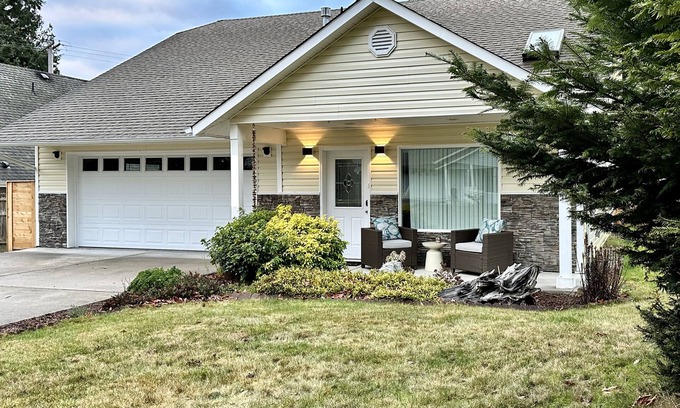 Open floor plan in the kitchen and main living room make for great conversation and relaxation. 65" Smart TV for movie night or the big game. Quiet common spaces for stretch or morning yoga. Memory foam mattresses in each room ensure a good nights sleep for tomorrow's adventures (with soaking tub in the master). Kitchen is well-furnished to cook and enjoy time with family. Entertain the kids with streaming TV, Xbox and Ping Pong. Expansive backyard, fully fenced for your furry family members. Walk to the water with astounding Olympic views. Spend your days exploring the quaint towns of Whidbey, endless trails, water access and charm with a home base that truly feels like home. Minutes to downtown Coupeville, Fort Casey & Fort Ebey state parks and the Port Townsend ferry.