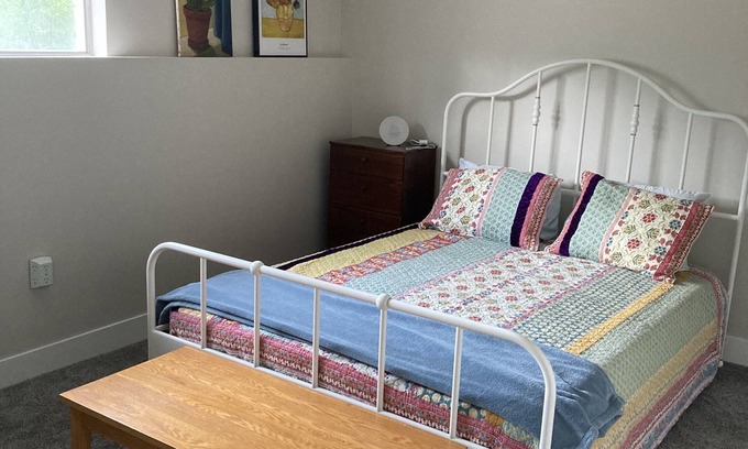 This daylight basement apartment is your modern home away from home. This apartment has plenty of natural light, updated appliances, and separate secure entrance. It is centrally located, 20 minutes from the mountains and 20 minutes from downtown. Walking distance to many good restaurants, but tucked away in a cute neighborhood that will make you feel right at home. A five minute drive from Target and Trader Joes, anything that you may have forgotten you can easily pick up! The back yard is large enough for barbecues and has the perfect place for a firepit. On rainy or cold days, curl up inside with a blanket and take advantage of the provided puzzles, books, and games.