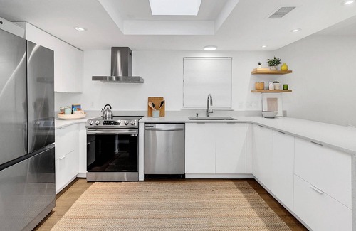 Our newly renovated duplex home is stylish and well-appointed with everything you need for a getaway or a longer visit. The large and modern kitchen is fully equipped, including a Keurig and french press. We have furnished and outfitted the home with things that are both beautiful and functional. Sofas have washable slipcovers - go ahead and put your feet up. A relaxing screened-in porch off of both bedrooms is a lovely spot for morning coffee. The large fenced backyard is perfect for outdoor living. Grill and dine in under the stars!