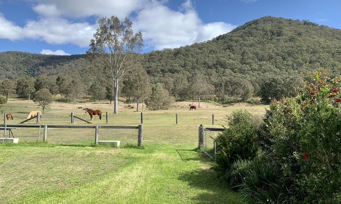 Nestled in the foothills of Paterson Valley this beautiful modern farmhouse is situated on 10 cleared acres and is close to local services. Surrounded by stunning views and wildlife, home to a herd of 4 horses and 2 friendly dogs this property is the perfect place to spend a few days getting back to nature. Central to Tocal, Mindaribba, Vacy ,Morpeth and Dungog you are able to explore local towns, food, wine and tourism. Ideal for large family getaways , group visits and wedding celebrations. House sleeps 12 ppl - 8 in main house which is linked by the breezeway to a seperate studio which sleeps 4 , relax on one of the decks and take in the magical sunrise and sunsets. Please note Hosts reside on property in seperate residence during the evening and uphold your privacy at all times. We also have a strict no party policy but family or small celebrations are most welcome