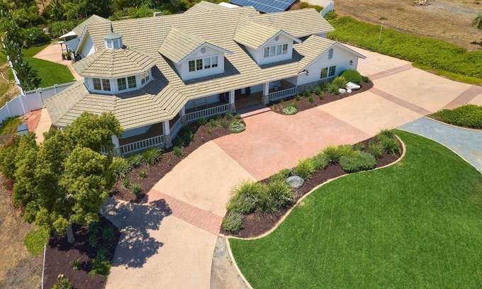 4600 sq. ft. tropical resort on one acre in peaceful Eucalyptus Hills. Huge modern kitchen and bar is an entertainer's dream, while sprawling, lush, manicured yard with breathtaking views is perfect for small weddings and other events.