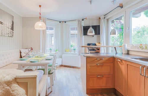 The holiday home along a stream near Kitzbühel has two separate, unconnected units with their own entrances. This property is located on the ground floor. Ideal for families, the downstairs flat with terrace offers beautiful views of the famous Hahnenkamm. The holiday home is easy to reach by public transport. From the garden you can reach the promenade leading to the picturesque and above all cosy centre of Kitzbühel