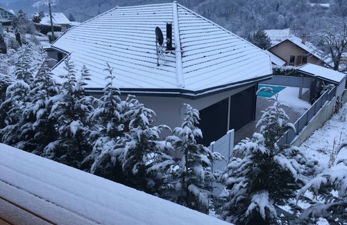 modern, new house, in the countryside, 142 m2 to 950 m2 of land, 75m2 living room, tv, dvd, fireplace, with open kitchen, 1 90cm oven, 1 steam oven, 1 machine pro coffee, dishwasher, induction hob , refrigerator, freezer, + robos, microwave, ironing room, and machine laver..1chambre 13 m2 (view pool), with bathroom, walk in shower, tV, 1 bedroom 14 m2, with bathroom, walk in shower , toilet, tV, and a large dressing room, 1 garage for 2 cars, 1 motorcycle parking bikes, pool house, pool 8/4 heated, robot, parking fermé3 pls .electrique portal, video, Lake Bourget. 30kms, lake of Annecy 70 km ski resorts between 45 and 100 km, italy, switzerland, 100 kms, center of the village (1100 inhabitants) 2 doctors, 2 nurses, 1 physiotherapist, 6 restaurants 10 km ...