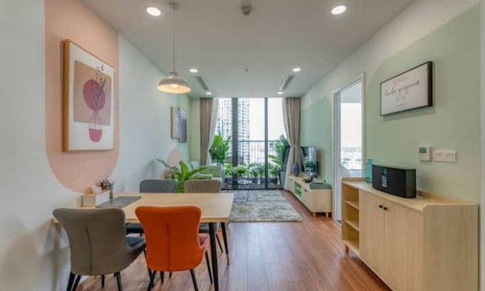 Enjoy your stay at a brand new modern and fully-equipped apt. This spacious corner 72 sqm has two bedrooms, 1 king bed, 1 queen bed, and two baths with an amazing panorama city view from the balcony and bedroom. Very quiet for business or/ and leisure travelers because of its unique D7 location. Only a few minutes to Phu My Hung, the top modern urban area of the country, where there are countless restaurants, coffee shops, a shopping center, a top-rated international school, and other services