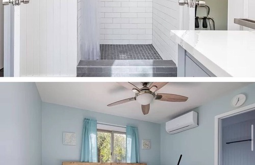 Tranquil, treehouse feel just steps to the ocean and about 8-10 min to the harbor. Everything you need and things you didn’t know you needed until you needed them are all provided.