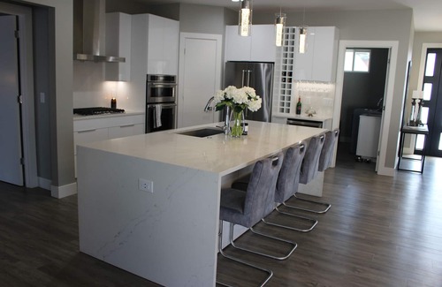 Welcome to Moderna Casa Vacanze, a modern, contemporary vacation escape in the heart of Washington wine country! Built in 2020, this one-level home is only 2.7 miles to downtown Walla Walla, and has high-end touches throughout, including quartz waterfall countertops, floating toilets and counters, hotel-style lighted mirrors in the bathrooms, stainless steel Kitchen Aid appliances, Maytag washer and dryer, and soaking tub in the master bath. Each of the rooms is tastefully appointed with queen beds in the guest rooms and a king size bed in the master bedroom. Easily sleeps 6 adults comfortably.