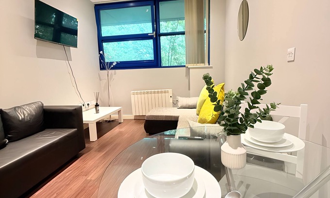 Unwind after your journey in a clean, modern space with WiFi, Smart TV, and cosy lighting — everything you need for a relaxing short stay near the airport.