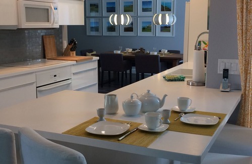 The view from the pool area is on the lake and the 2. Green and the 3. Tee off the Pinemoor golf course. Directly on the water there is a private wooden deck. From here you can observe the waterfowl, turtles, armadillos, raccoons, our two squirrels Gin & Tonic and of course alligators slowly gliding in the water. If you are lucky, the Bobcat will meet you and your boys. What a peaceful environment!