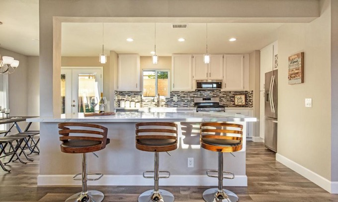 Offering garden views, Modern Home SoCal Luxury Claremont/Upland 2BD/ 2BTH +Den, Oasis Backyard w/ BBQ is an accommodation located in Upland, 27 km from Azusa Pacific University and 10 km from Pitzer College. The air-conditioned accommodation is 25 km from Auto Club Speedway, and guests benefit from private parking available on site and free WiFi. The holiday home is equipped with 2 bedrooms, 2 bathrooms, bed linen, towels, a flat-screen TV with cable channels, a dining area, a fully equipped kitchen, and a patio with mountain views. The holiday home offers a sun terrace. Guests at Modern Home SoCal Luxury Claremont/Upland 2BD/ 2BTH +Den, Oasis Backyard w/ BBQ can enjoy skiing and cycling nearby, or make the most of the garden. Harvey Mudd College is 11 km from the accommodation. The nearest airport is LA/Ontario International Airport, 14 km from Modern Home SoCal Luxury Claremont/Upland 2BD/ 2BTH +Den, Oasis Backyard w/ BBQ.