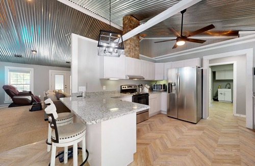 Escape to this peaceful retreat in Claxton, GA, where this charming house sits on 18 acres of land with direct access to a serene pond right next to the home. Enjoy the ultimate privacy for a relaxing family vacation, with the pond stocked with Bass, Bream, and Catfish for a fun fishing experience. Guests have the luxury of using two kayaks and one canoe to explore the tranquil waters at their leisure.