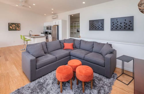 This delightful home located in Eastsound on Orcas Island is modern, clean, and full of light. It features main floor living with the primary bedroom (king-size bed) and bath on the same floor as the living, dining, and kitchen. On the lower floor you'll find a TV room, with sleeper sofa, second bedroom with two twin beds a comfy window seat, and full bath. The separation from the main floor to the lower level is very accommodating for people who want a little privacy from other guests or just some quiet time to themselves.