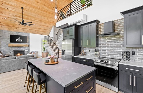 For ultimate relaxation, head out to the expansive deck where a 7-person hot tub awaits you. Soak up the tranquil ambiance, take in the breathtaking surroundings, and let your worries melt away. As the sun sets, gather around the fireplace area to roast marshmallows and create lasting memories with loved ones.