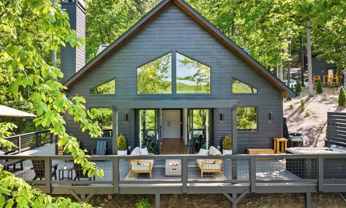 Welcome to our captivating brand new A Frame Cabin, nestled in the picturesque and gated Talking Rock Resort community, just one hour north of Atlanta. This stunning lakefront property boasts 4 bedrooms and 2 bathrooms, offering the perfect blend of luxury and comfort.