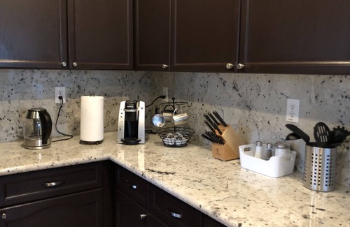 The kitchen is fully stocked with dinnerware, utensils, pots/pans, wine glasses, salt and pepper for you to prepare your finest dishes.