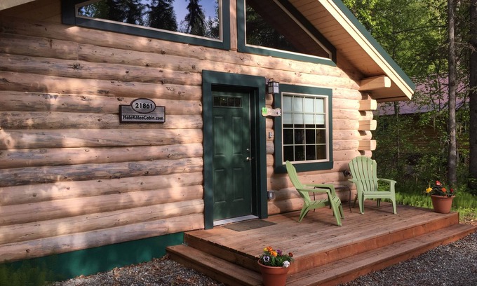 Hale Kōlea (Ha-lay Co-lay-ah) Cabin is an available custom built log cabin and legally-operated* vacation rental located in the rural neighborhood of east Talkeetna, just a 15-minute walk from the popular historic district. We are a SMOKE FREE, NO PETS and #OpenToAll establishment that measures 616 sq/feet (57.23 sq/m) and designed with a welcoming open studio layout (no bedrooms). Hale Kōlea Cabin vacation rental is an ideal getaway for two persons with a queen bed available.