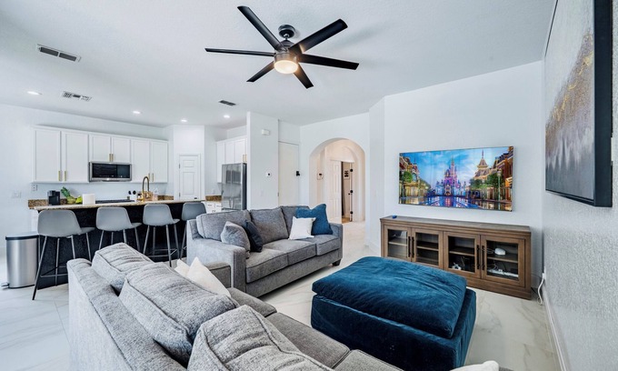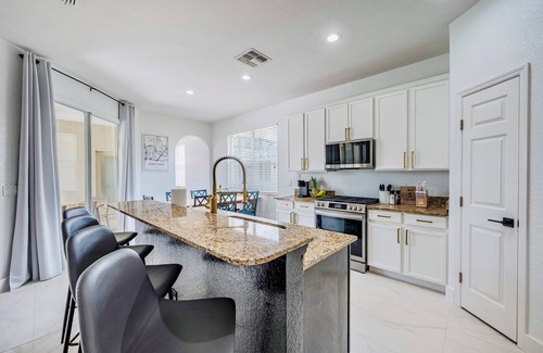 New listing! Everything is new! Welcome to the Modern Luxury Orlando Villa in a gated resort community! Relax and take a dip in your private heated Pool and Spa after a long day at the parks! No Resort Fee and Free parking! 20 minutes to Disney! 30 mins to Universal! Free Pool and Spa heating! Experience elevated resort style living and make unforgettable memories with the family! Sleeps up to 11! Be close to restaurants, shopping and activities right in Kissimmee! Located right near the magic!