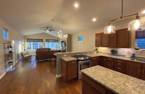 *Ask us about special offseason rates for extended stays!* This gorgeous home welcomes guests to Milwaukee’s vibrant Brady St neighborhood. This ideal location is tucked away on a quiet street but just steps away from the abundant dining and nightlife of Brady St and beyond. Well appointed with luxurious touches and all of the essential amenities to make your stay comfortable with dual en suite bedrooms and attached garage parking for one vehicle, plus a great fenced in yard and patio space.