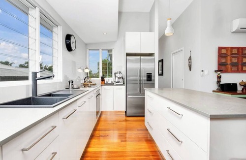 You’ll be immersed in all Cairns has to offer from this gorgeous Queenslander retreat in Parramatta Park. It’s centrally located just a five-minute drive to the Esplanade, Night Markets and Marina. Immaculately designed, this home embraces indoor-outdoor living with lush gardens, alfresco dining, BBQ and sun lounges. Inside, it features stunning open-plan spaces with a generous modern kitchen and offers the privacy of two separate sleeping wings and two living areas, perfect for group stays.