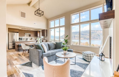 This home offers a stunning getaway, complete with mountain and river views, with a fantastic locale nestled in the beautiful Columbia River Gorge. Take in the sights from one of the multiple outdoor spaces. Inside your modern and sleek retreat, find high-end furnishings, new appliances, and all the comforts of home.