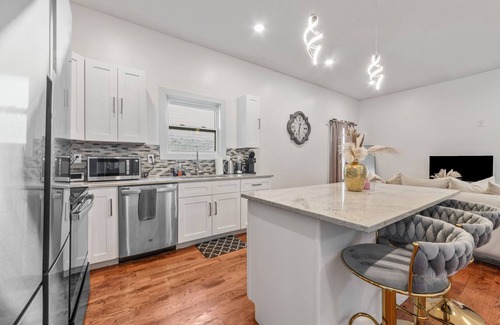 Experience comfort and style in this stunning 4-bedroom, 2.5-bath modern home. Perfect for groups or families, this property features a spacious, open layout with chic décor, a sleek kitchen with stainless steel appliances, and unique accent walls that add a vibrant touch. Relax in the cozy living room or retreat to the luxurious bedrooms for restful sleep. Enjoy mornings on the front porch or explore the nearby attractions. Your stay here combines modern elegance with all the comforts of home.