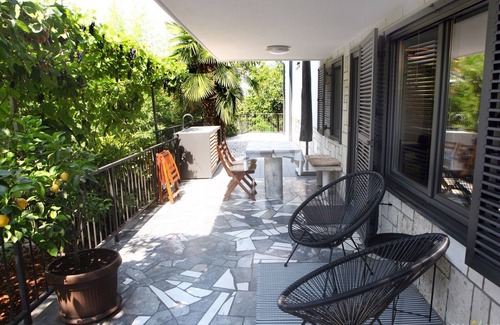 The 1-bedroom apartment provides 2 twin size beds and a double bed that can sleep a total of 4 adults. The common area is set with the double bed, a flat-screen TV, a well equipped kitchen, a dining table, and a clean private bathroom. The apartment features a terrace with outdoor furnitures and a nice garden, giving guests more options to relax and enjoy the fresh air. Guests can benefit from the free wifi and free parking space on site, where reservation is not needed.
