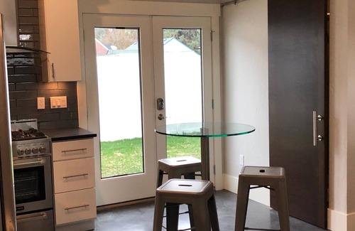 New construction modern studio for 2 guests with private access and free private parking pad. Located 3 blocks from Sherman Avenue and the nearest dining and bars. Walking distance to shopping and Lake Coeur d'Alene. 1/2 block to Pearson's city park. Full kitchen with coffee, = bath with shower. No stairs. Amenities include wifi, laundry, smart TV, patio and lawn, and top-quality linens. Owner lives on the attached property.