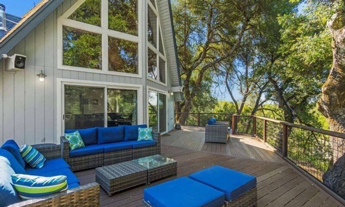 Wine Country Life Vacations is beyond thrilled to represent Rilassare, a Modern Riverfront home. Set against the Russian River in Sonoma County, Cloverdale, this three bedroom two bathroom home is a spot at which you will want to plan a memorable several days or weeks, as you enjoy the river, deck, fire pit, bocce court, bbq, and hot tub. Riverfront Estate is literally a mini-resort! All you need is your food. Linens, a stocked kitchen of dishes, pots/pans, flatware, etc make meal preparation a breeze. Plenty of outdoor furniture offers relaxation, and a pathway to the river and summer dock makes water fun a reality. (At your own risk, no lifeguard at River.)